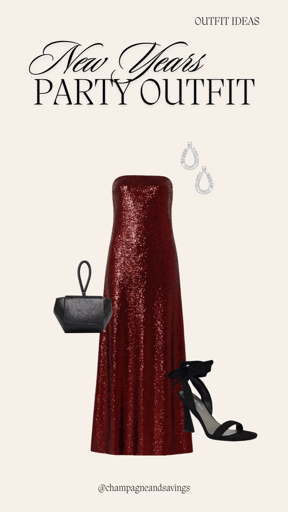 Se você foi convidado para uma ocasião mais sofisticada para a véspera de Ano Novo, esse vestido é incrível. Se você está ficando cheio, um vestido de lantejoulas vermelho nunca perde. Adicione acessórios negros para diminuir um pouco (mas não muito).