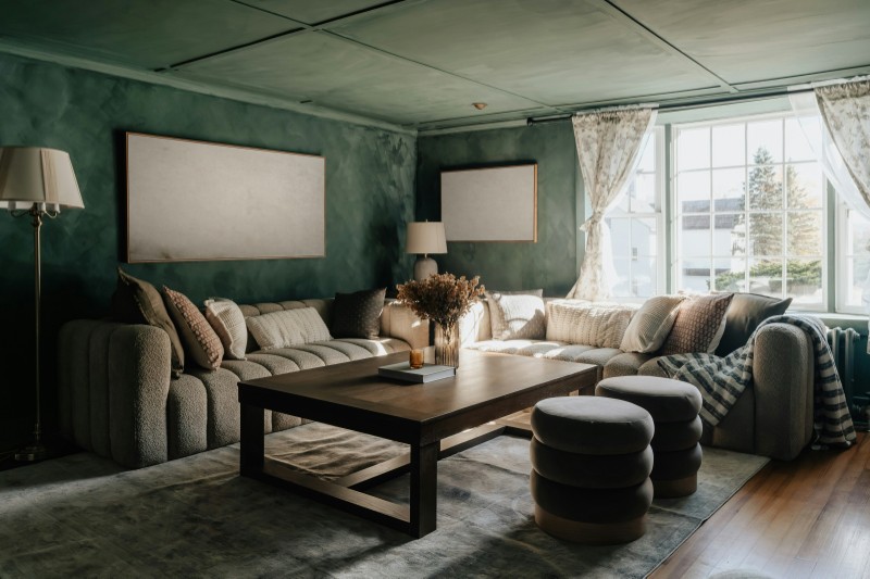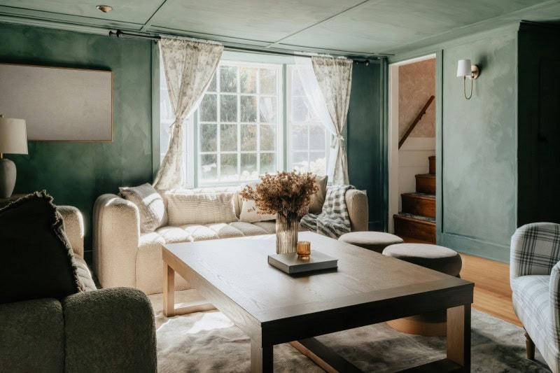 O inverno muitas vezes muda a forma como os quartos são usados. Os móveis se aproximam. A iluminação compensa os dias mais escuros.