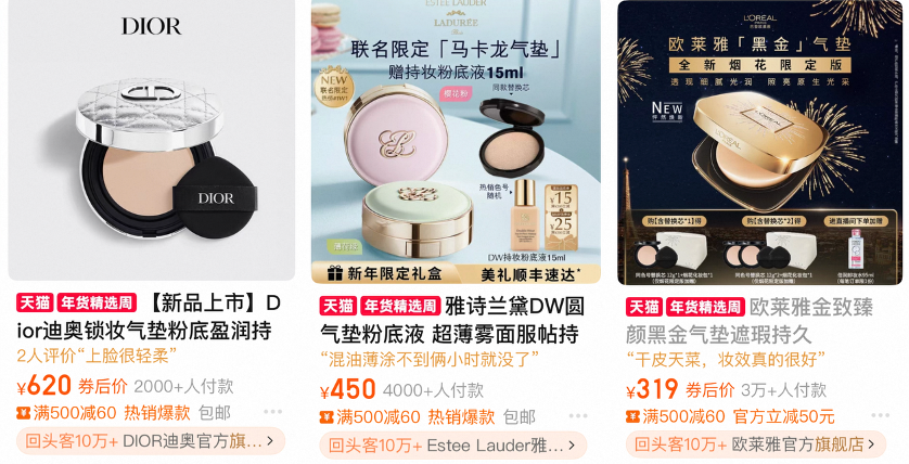 As comparações de preços ilustram claramente esta divergência. Marcas nacionais como Tempo (彩棠), Flor sabe (花知晓), e Judydoll (橘朵) normalmente, as bases de almofada de preços variam entre US$ 15 e 30, enquanto produtos comparáveis da Dior, Estée Lauder e L’Oréal geralmente variam de US$ 45 a 85. Embora existam exceções onde Mao Geping (毛戈平) está posicionado no segmento premium, a tendência mais ampla permanece consistente: as marcas nacionais dominam o segmento de valor e tratam os mercados de nível inferior como principais motores de crescimento, enquanto as marcas globais os posicionam em grande parte como secundários.