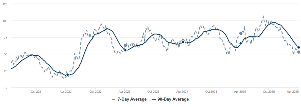 Olhando para o resto de 2026, prevemos que Newberg continuará a sua autocorreção. E uma vez que o inventário actual de 53 casas é inferior ao dos últimos anos, qualquer aumento na procura dos compradores através de mudanças sazonais ou potenciais ajustamentos nas taxas de juro poderá levar a uma Primavera e início de Verão muito competitivos. Embora o tempo de mercado seja atualmente elevado, de 154 dias, esperamos que esse número caia à medida que as vendas da primavera sejam finalizadas e o estoque “velho” de inverno seja absorvido.