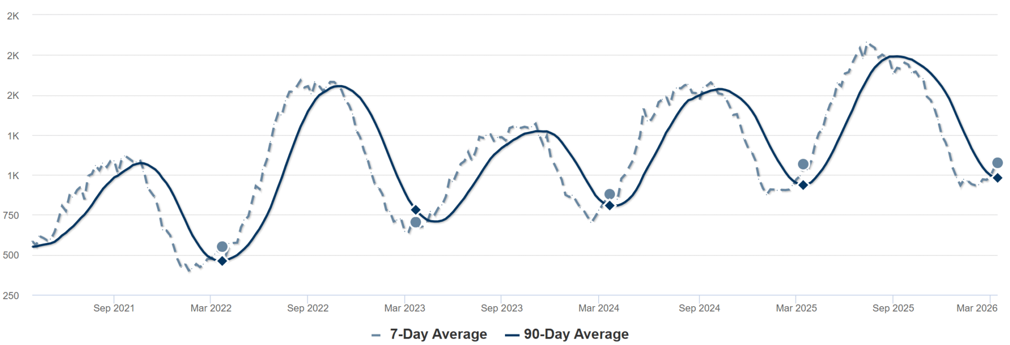 Um dado impressionante nesta primavera é o aumento significativo no tráfego de compradores (o melhor desde 2022). Usando a atividade do cofre SentriLock, podemos ver que os compradores estão prontos para comprar, sugerindo uma situação competitiva. temporada de compras de primavera isso coloca os vendedores em uma posição melhor do que nos anos anteriores.