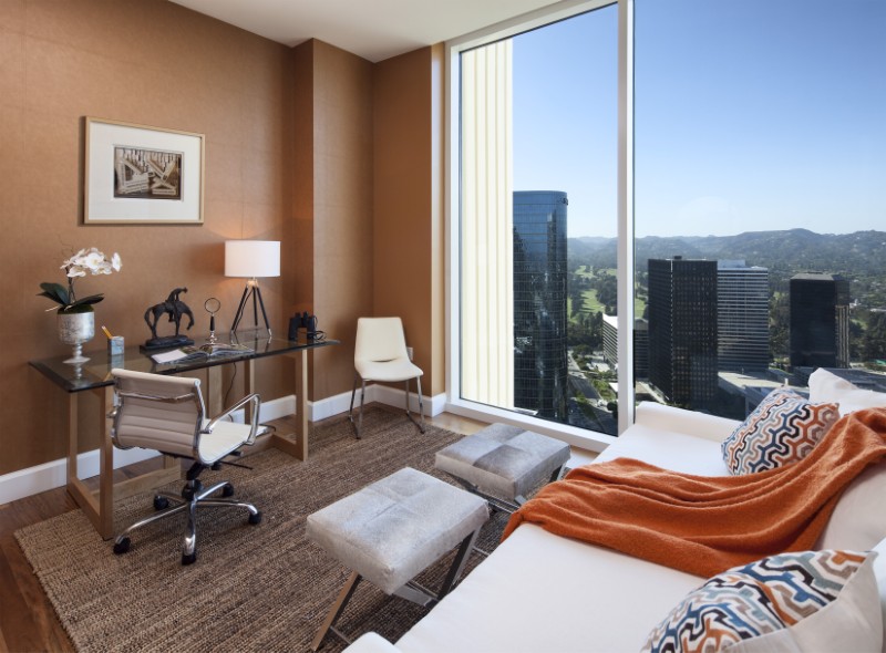 A ideia é fornecer a escala, os serviços e a privacidade de uma grande casa independente, ao mesmo tempo que a coloca em uma localização central, a poucos minutos de Beverly Hills e do Westside circundante.